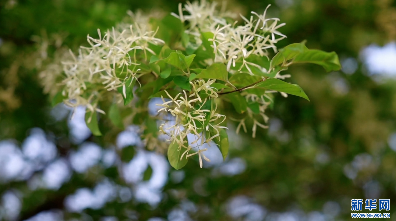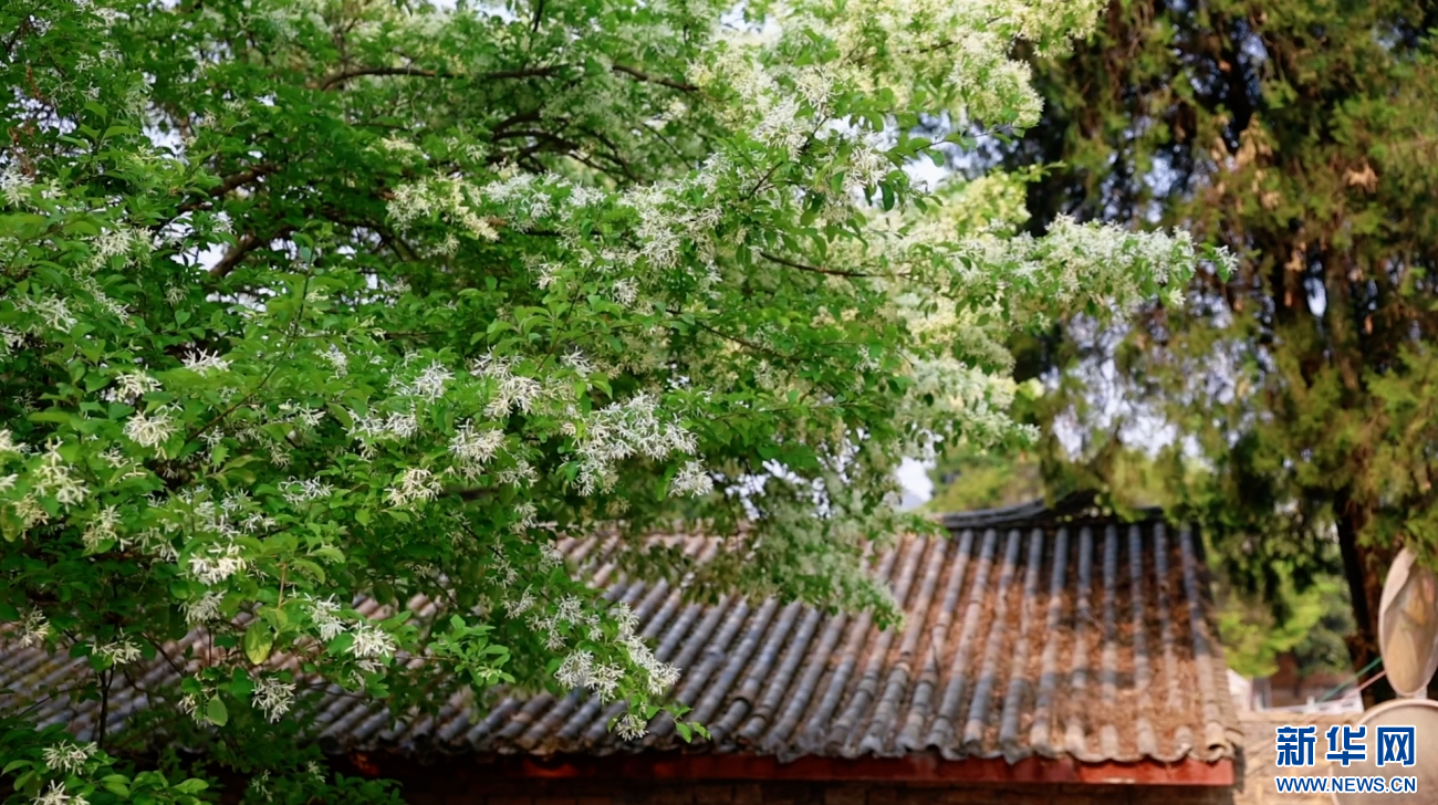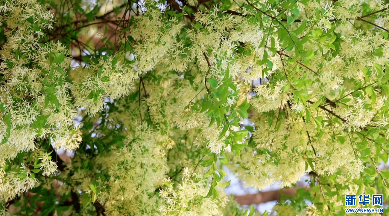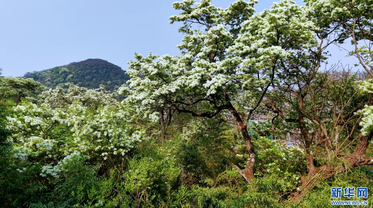 流苏树又被称为“四月雪”,四月是流苏树最美的时刻。在云南省昆明市石林彝族自治县圭山镇糯黑村,平均树龄超150年的107棵流苏古树冠盖如云,满树繁花悄然绽放,细碎洁白的花瓣宛如皑皑白雪覆盖枝头。游客漫步树下,仿佛闯入了童话世界,浪漫又治愈。流苏树与石板古寨、民俗风情相融,呈现出“古寨+古树+古韵”的独特景致。
