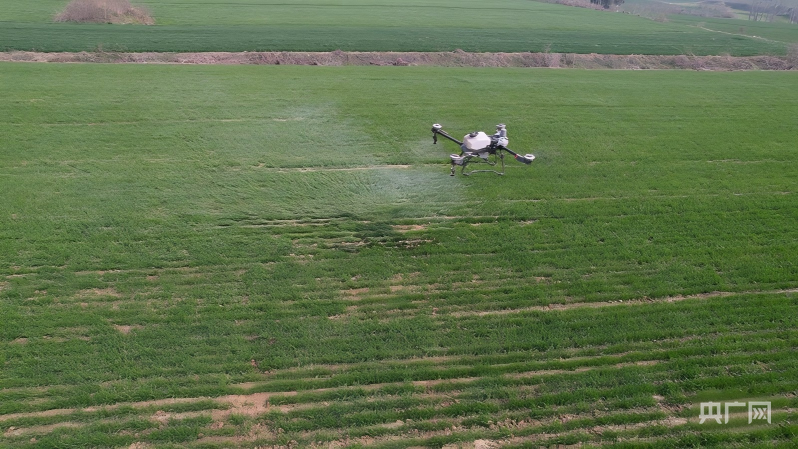 无人机在麦田进行飞防作业(央广网发 张旭 摄)