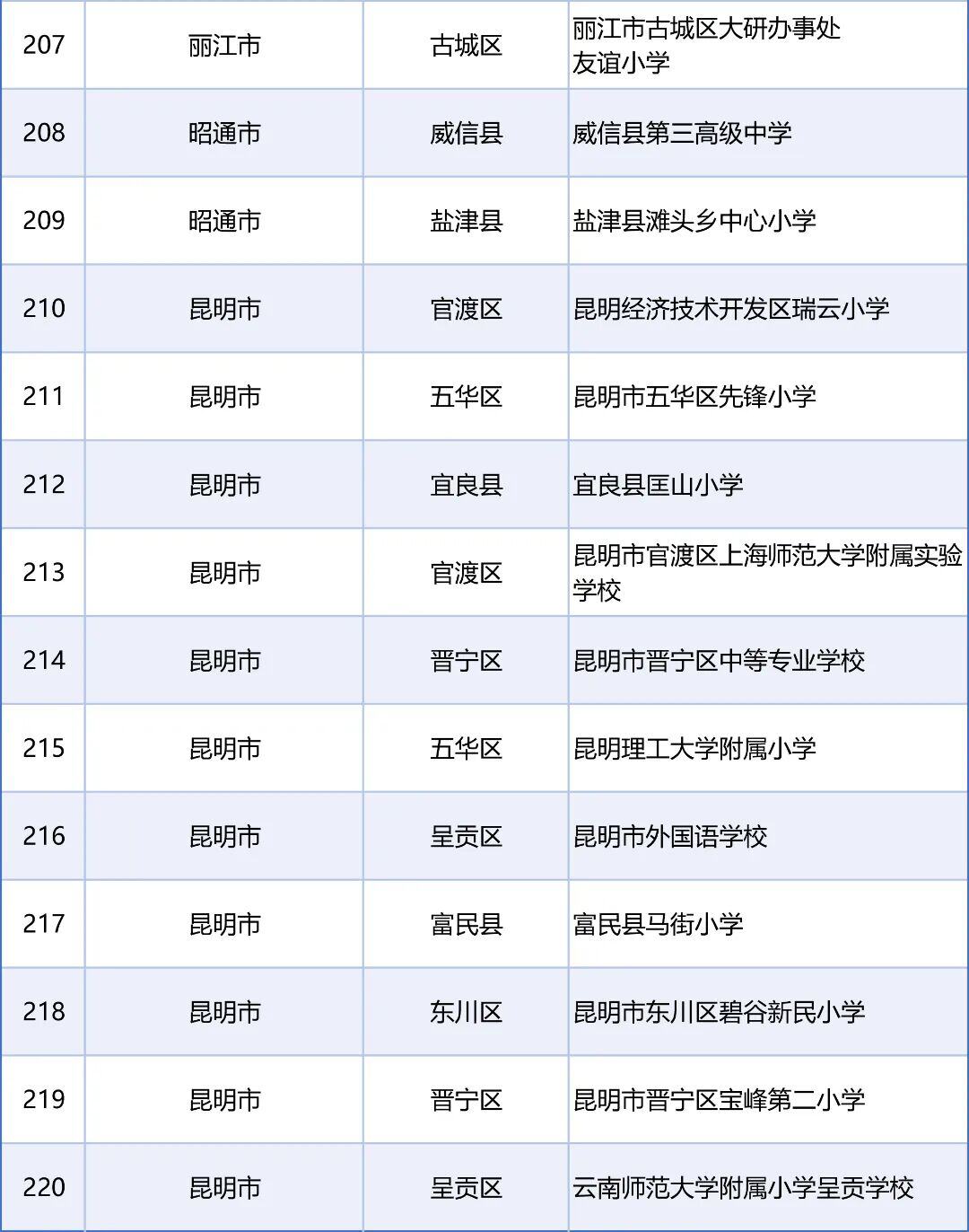 云南有220所学校入选