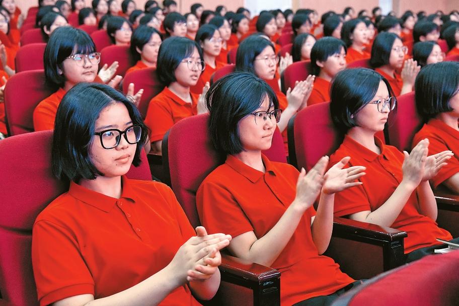 台下女高学子泪光闪烁,现场不时响起热烈掌声。大家用笔认真记录,把感动与敬佩化作前行动力。她们心中无比敬佩,在祖国的万里边疆,有一群像洛桑扎西叔叔这样的人,即使获得了极高的荣誉,依然甘当默默无闻的守护者。
