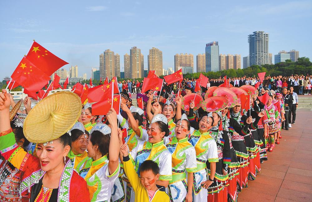 各民族群众参加升旗仪式。 通讯员曾永洪 摄