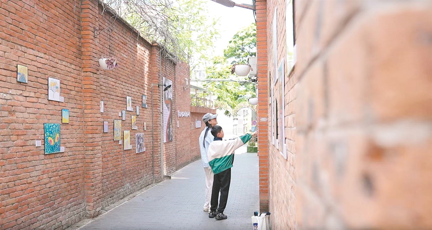 近段时间,文林街天君殿巷成为不少市民新的打卡点,这里正展出云师大附小文林校区学生的画作。