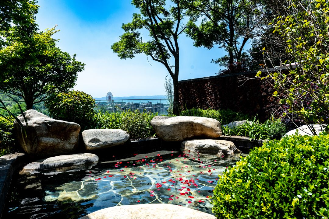 自然馈赠与匠心设计的碰撞,成就了酒店独有的居住美学。酒店依托2622米地下天然温泉资源,匠心打造了36套独栋温泉别墅,遵循“一房一院一私汤”的设计理念,分为云山阁双卧、彩云轩单卧等多种房型,面积从270㎡到310㎡不等,每一套别墅都配有私家花园、独立天然温泉泡池、SPA理疗房、桑拿房与棋牌室,搭配贴心管家式服务,为旅人提供极致私密的休憩空间。别墅依山而建,苗木繁盛、珍稀植物遍布,石板小径蜿蜒其间,推窗见绿、移步换景,仿佛置身桃源秘境,无论是家庭出游、情侣度假,还是好友小聚,都能在这里找到专属的松弛时刻,在私汤氤氲中,卸下生活的疲惫,享受与自己、与家人、与自然相处的纯粹时光。