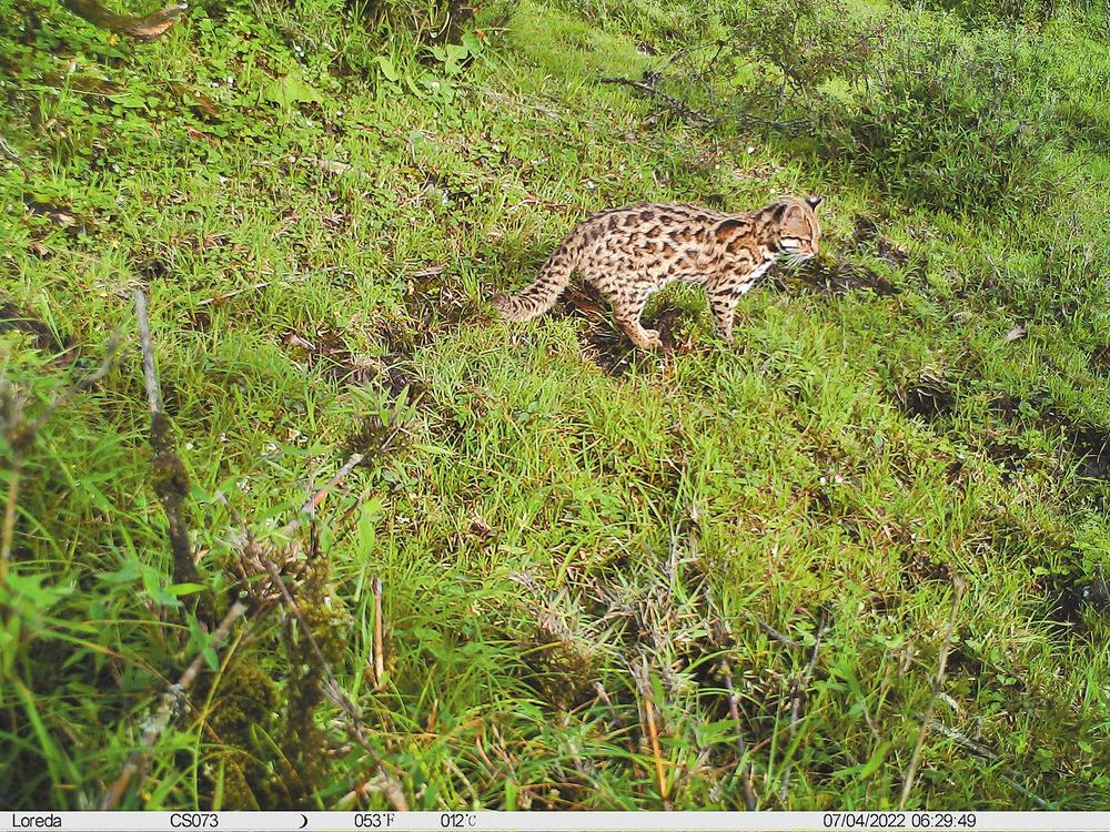 有一次从花甸坝去小花甸的路上,马驰正小心翼翼穿过灌木丛里的小水塘。突然一只豹猫从不远处穿过,浑身金黄色的绒毛,点缀着黑色的斑点,颜色漂亮,动作轻盈。马驰说,那一刻,所有的疲惫都消散了。