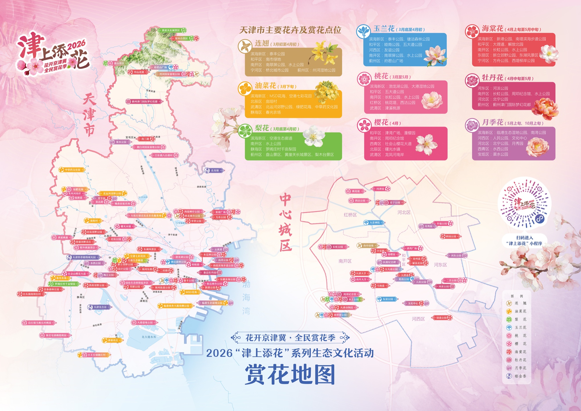 京津冀三地赏花地图(央广网发 天津市规划和自然资源局供图)