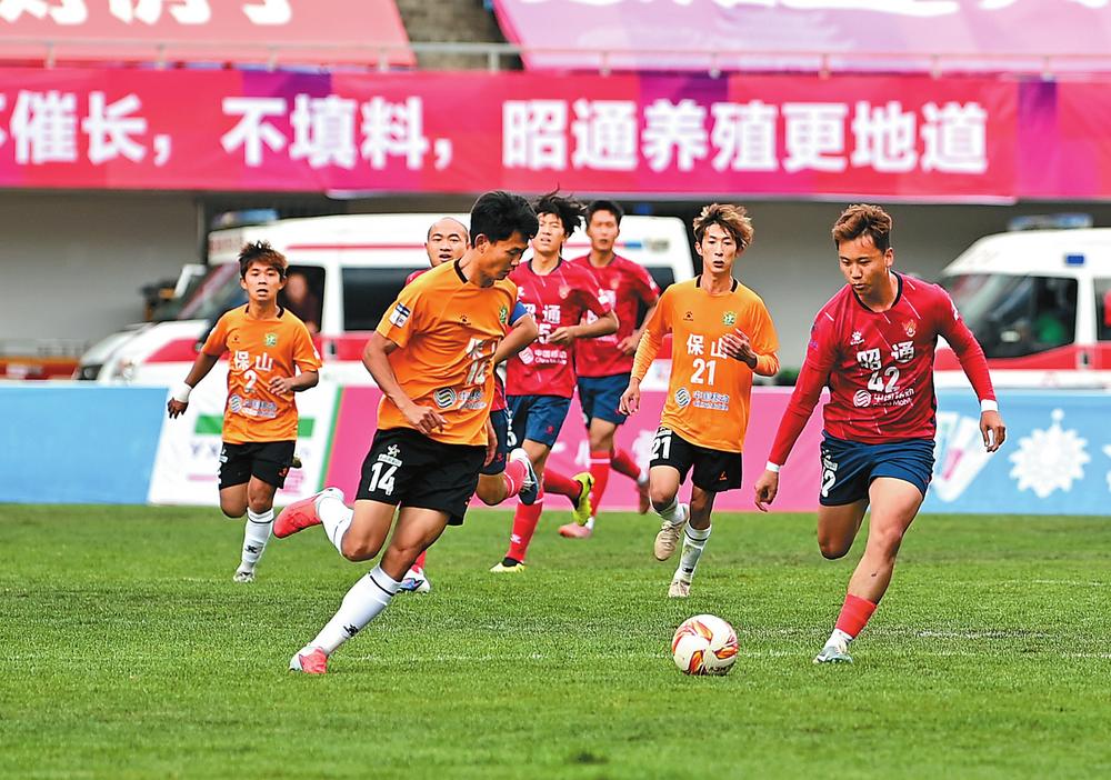 昭通队主场对阵保山队,双方拼抢激烈互有攻守。比赛最后一分钟,昭通队陈鑫打入制胜一球,帮助球队1:0险胜保山队。