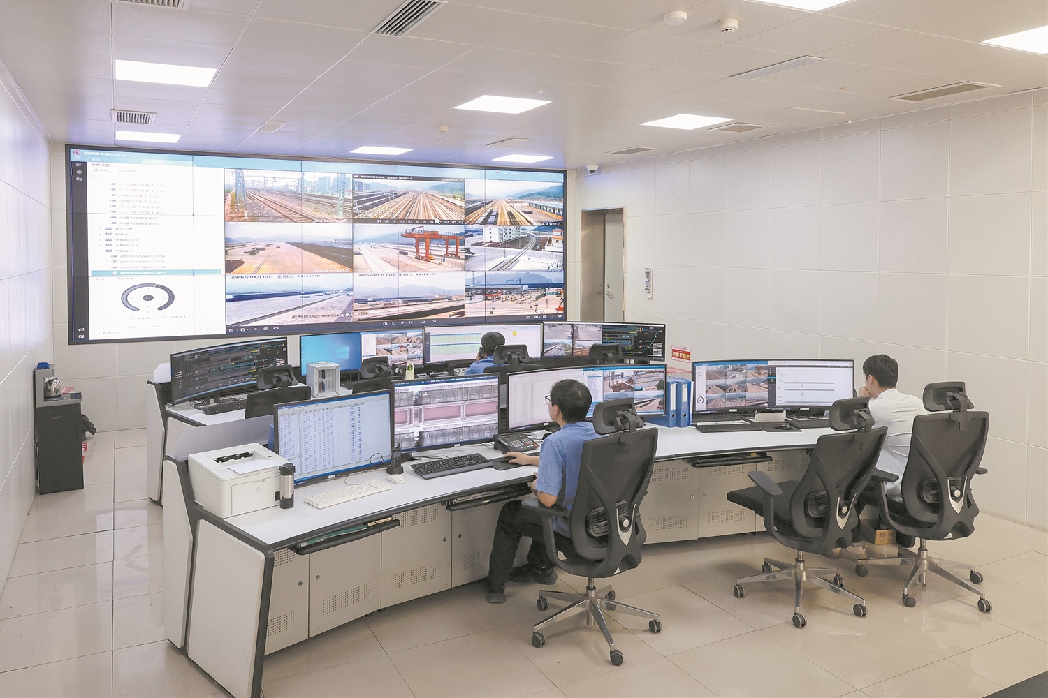 图为中国铁路昆明局集团有限公司工作人员在磨憨交接所货运指挥中心内工作。新华社文/图