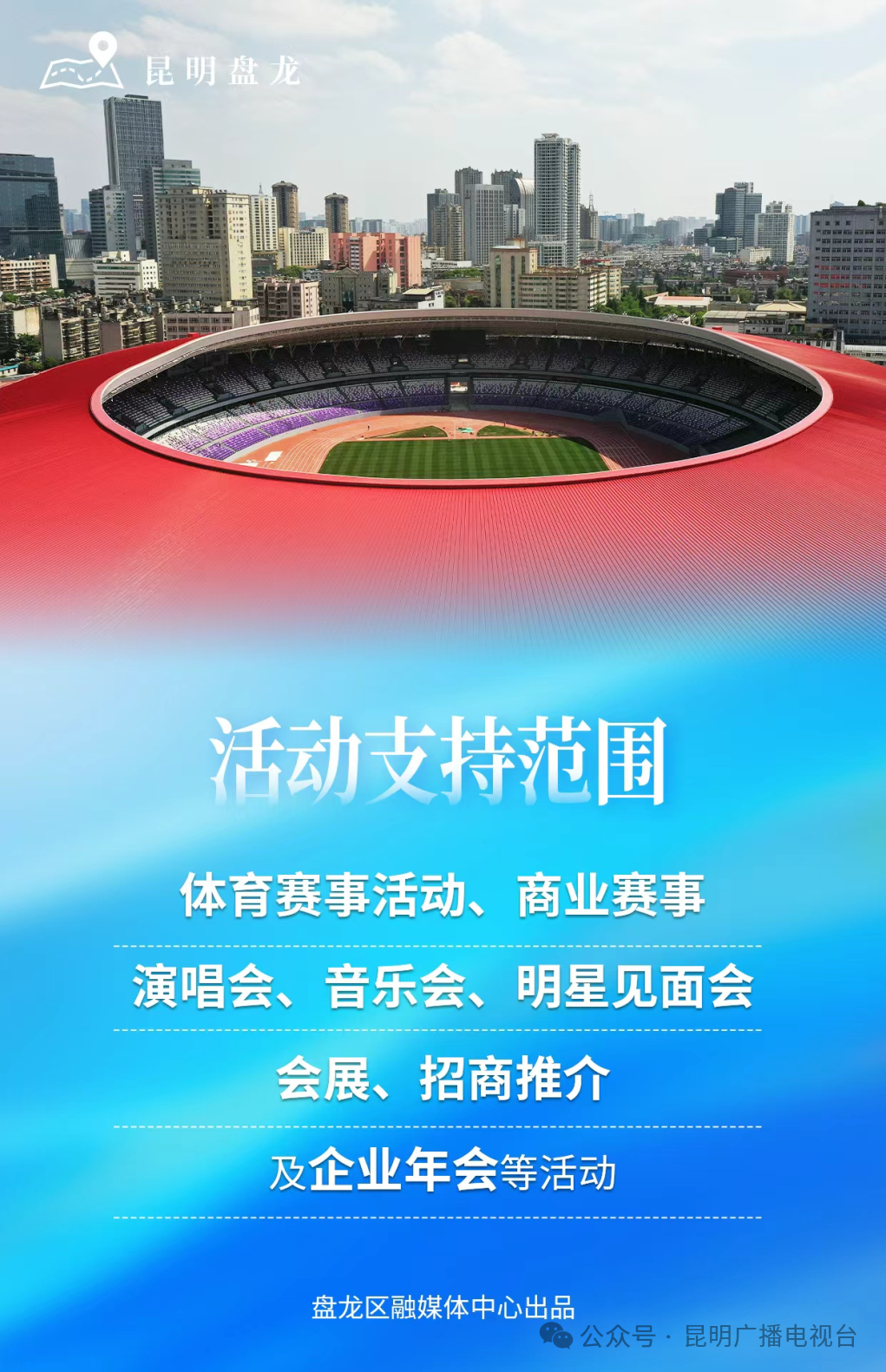 日前,相关部门发布了拓东体育场、体育馆焕新开放情况的公告,内容显示,拓东体育场:6月一7月场馆试运行、功能测试,除8月8日、10月28日以外均接受活动场地预约。体育馆预计7月30日开放,8月一12月均接受活动场地预约。活动支持范围包括体育赛事活动、商业赛事、演唱会、音乐会、明星见面会、会展、招商推介及企业年会等活动。