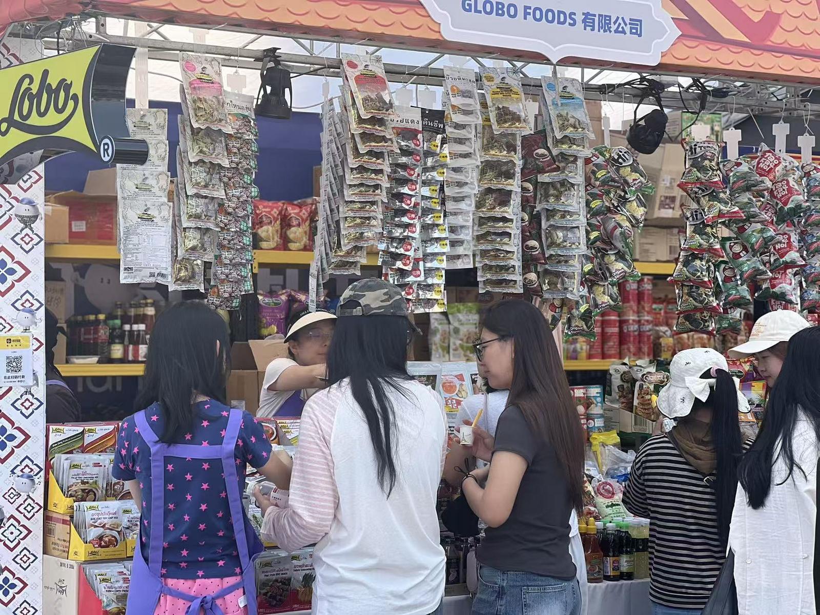 据介绍,本届泰国节共有60余家泰国本土参展商把地道的泰国好物带到了活动现场。泰国榴莲、冬阴功汤料包、泰式奶茶等特色美食,乳胶制品、日化美妆、泰式手工纺织品等好物一站式呈现,让市民“足不出昆”就能选购地道泰国特产,其中泰国直运金枕榴莲更是吸引了众多吃货驻足。此外,泰国国家旅游局还特别设置了2项体验活动,市民可在现场亲手制作泰式香薰精油、DIY孔剧面具冰箱贴,沉浸式感受指尖上的泰国风情。