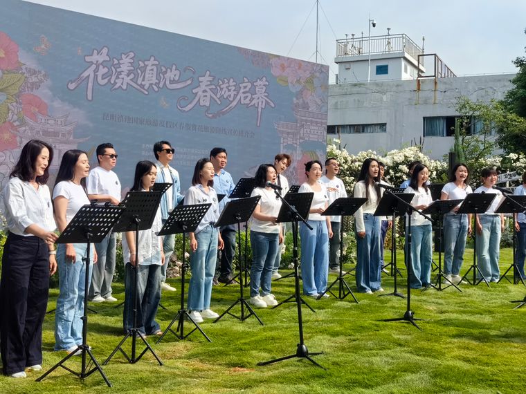 知名旅游推荐官花摊老俞、大嘴岳立、老秦依次登台,以亲身体验和生动故事分享昆明的湖光山色与精品线路,邀请大家来春城昆明感受多样春天。此外,云听合唱团带来的暖场表演悠扬萦绕花海,让在场嘉宾沉浸式感受滇池春日的灵动与活力。