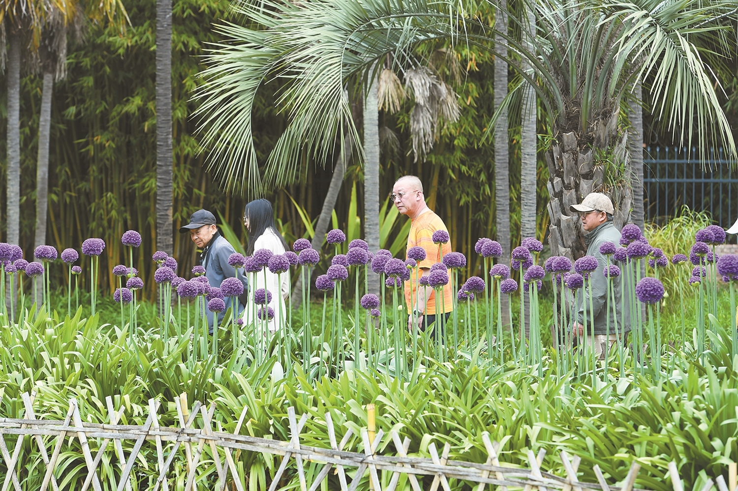 游客在昆明植物园观赏葱花。 本组图片记者王俊星摄