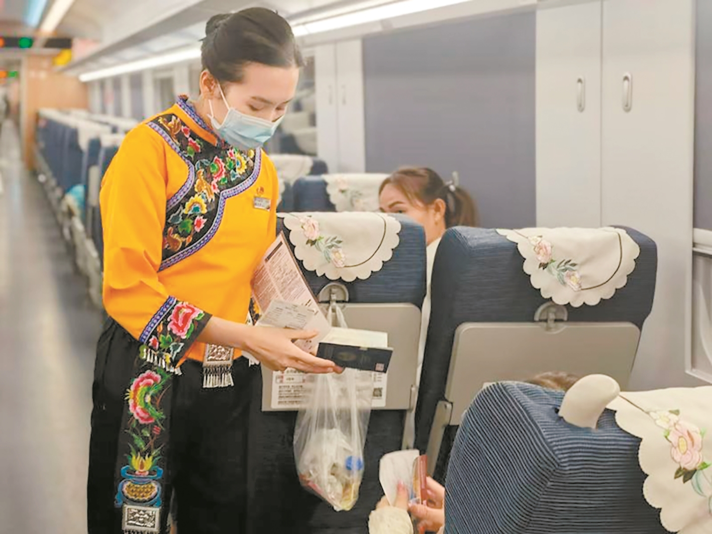 依光香来自西双版纳州勐腊县的一个傣族村寨,是国铁昆明局昆明客运段高铁五车队列车员。她凭借一口流利的老挝语和泰语,在中老铁路跨境列车上为旅客带来温暖的体验。