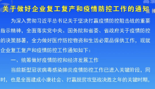 我省发布关于做好企业复工复产和疫情防控工作的通知