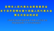 昆明市人民代表大会常务委员会关于召开昆明市第十四届...