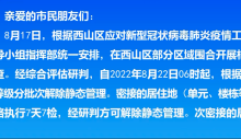 关于西山区部分围合区域解除静态管理的通告