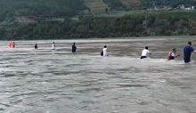 香格里拉上江乡 江水暴涨三人被困险滩 20人形成“人墙...