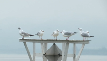 海埂东码头 国庆期间上百只海鸥靠岸觅食 先头部队提前...