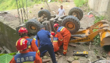红河 挖掘机坠崖驾驶员被困 消防紧急展开营救
