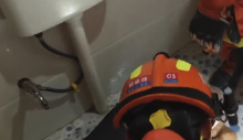 墨江县森工局小区 老人手臂卡进便池 消防员紧急施救