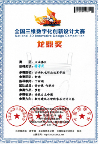 室内设计获奖作品:2017年15级产品班何秋雨、许时慧同学参加全国三维产品数字化创新设计大赛,荣获省级特等奖和一等奖,总决赛获全国二等奖。