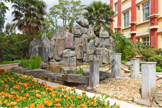 漫步校园,三栋现代式楼宇屹立挺拔,黄白相间的墙体,点缀几根朱红色的柱子,显得格外庄重且宁静。嵌于教学楼上的“志存高远,足踏实地;博学精进,格物致知”十六个苍劲醒目的大字,在初春暖阳的照耀下熠熠生辉。简洁大气的升起台上,鲜艳的五星红旗在高空中猎猎飞扬。两栋女生公寓楼间的一处清幽小园,为“仁智园”,那里四季花开,流水潺潺,方石罗布,学子们时常盘踞于这方“宝地”,手捧一本挚爱的好书,择石临池而坐,入眼的是文字,入鼻的是花香,好生惬意!