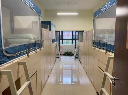 学生宿舍为四人间,设有洗衣房、淋浴间、洗漱间,同时配备二十四小时的宿管老师随时关注学生。
