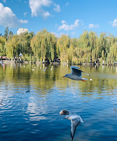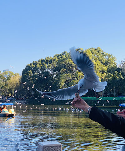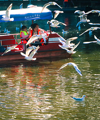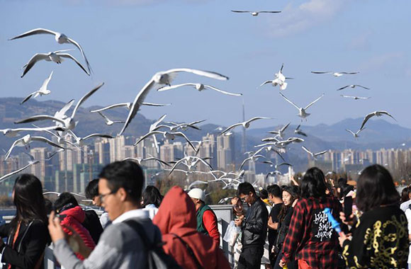 14名外国友人在翠湖观鸥 用镜头定格冬日美景
