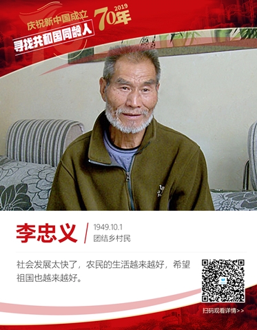 回首70年来的变化,李忠义感慨地说:“社会发展太快了,农民的生活越来越好,希望祖国也越来越好。”