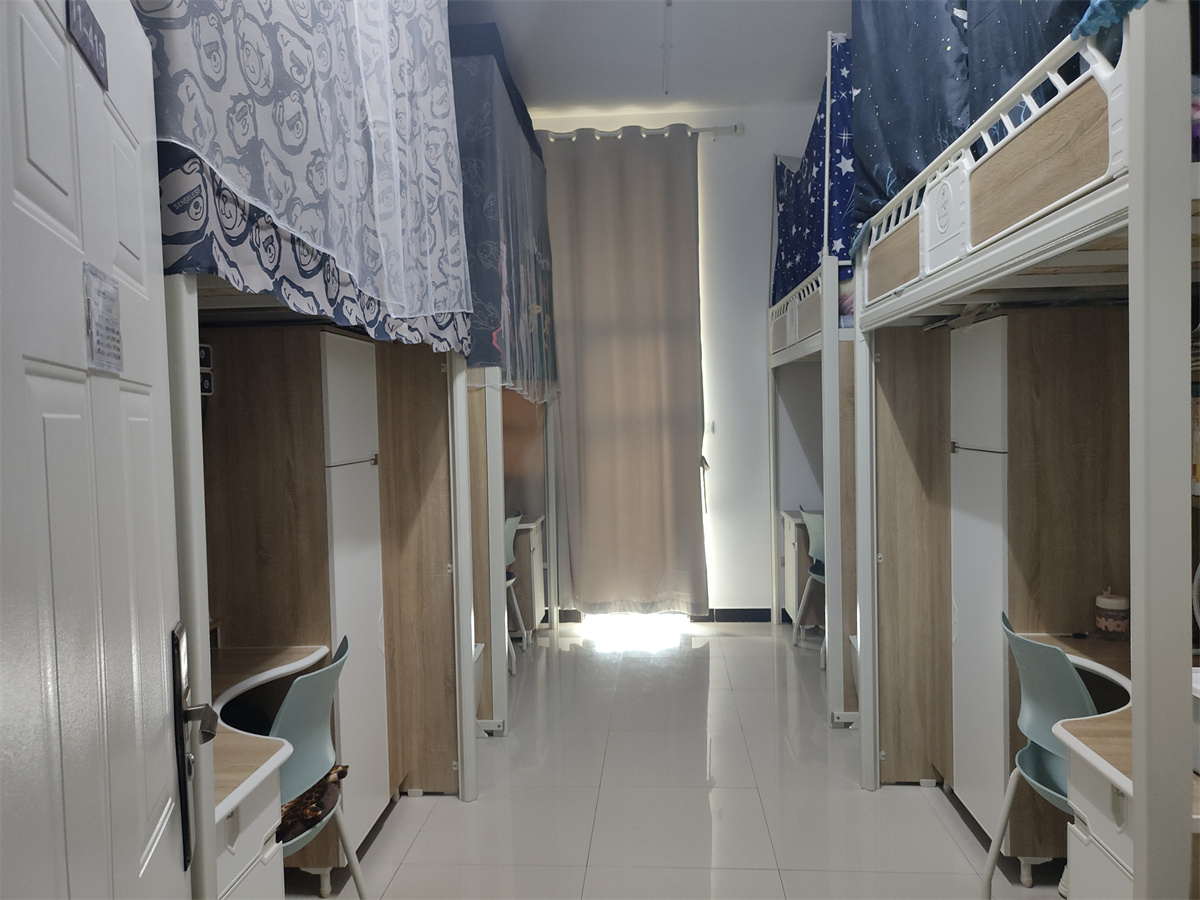目前学校有15栋学生公寓,建筑面积共80260.59平方米。学校宿舍4一6人/间,环境优美,干净整洁,配置现代,收费低廉。学生宿舍网络全覆盖,每个宿舍均设有独立卫生间洗漱台,并带热水供应服务,宿舍管理服务由物业公司承接,24小时有人值班,实施高校6T公寓管理,公寓楼配备有冰箱、微波炉、全自动滚筒洗衣机、烘干机、洗鞋机、直饮水机、吹风机、售货机等设施。