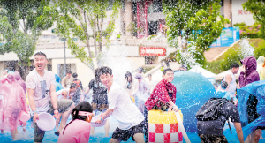 除景区外,游客在昆明多个商圈体验到“泼天的欢乐”。4月12日至13日,昆明融创滇池后海举行体验泼水文化节,游客不仅可以体验泼水狂欢,还能观赏6国风情花车巡游;南亚风情第壹城举办系列夏日活动,游客在南亚广场牌坊处能参与泼水狂欢。