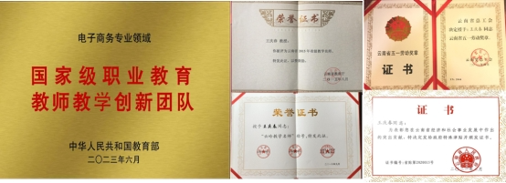 电子商务专业群聚焦云南优势产业和资源禀赋,深入落实数字中国战略部署,锚定“3815”战略发展目标,通过云南省“双高”专业群建设、国家级职业教育教师教学创新团队建设、国家精品在线课程建设等教育教学关键要素的改革创新,形成了一系列高质量教育教学成果,为云南民族边疆地区高质量发展输送大批高素质特色新商科技术技能人才,实现教育与区域经济的协同发展。