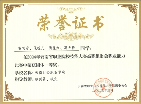 2024年云南省职业院校技能大赛高职组财会职业能力比赛团体一等奖