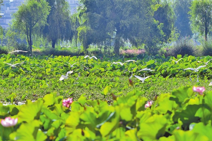 夏日的昌宁县荷花盛开,荷塘内白鹭翩飞,构成了一幅美丽动人的生态景象。通讯员吴再忠 摄