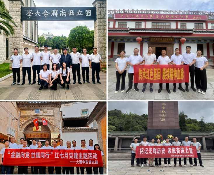 在昆明,阳光财险昆明中支党支部组织全体党员、入党积极分子到西南联大博物馆,学习西南联大师生在战火纷飞中刚毅坚卓、弦歌不辍的精神;在大理和丽江,阳光财险当地机构党支部组织党员同志参观红军长征纪念馆,重温长征光辉历史,感悟伟大革命精神;在德宏,德宏中支党支部到畹町南洋华侨机工回国抗日纪念馆开展爱国主义教育;在普洱,普洱中支党支部前往普洱民族团结园,学习先辈先进事迹,重温总书记给普洱民族团结誓词碑盟誓代表后代的回信精神。