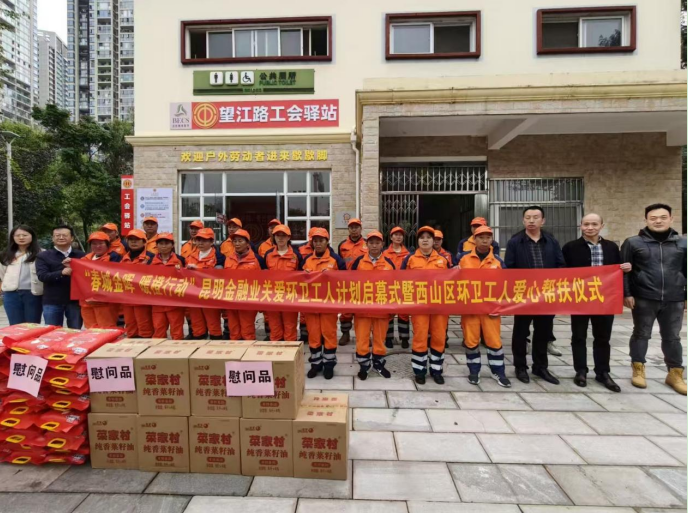 10 月 24 日上午,“春城金晖 暖橙行动” 昆明金融业关爱环卫工人计划启幕式暨西山区环卫工人爱心帮扶仪式,在西山区望江路工会驿站举行。此次活动由昆明市委金融工委、昆明市城市管理局主办,西山区财政局、西山区城市管理局、人保财险昆明市分公司协办,30余名代表参与活动,为环卫工人送上关怀。
