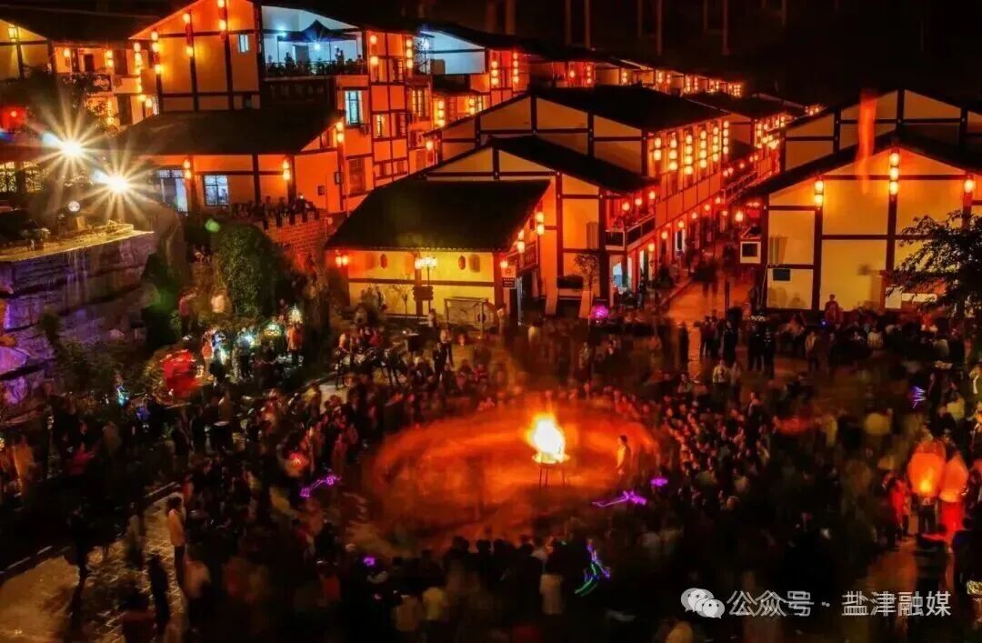 暮色,像一滴浓淡相宜的墨,在宣纸上缓缓润开,终至四合。在水田新区的广场上,乐声与笑语一同升起——民族的舞步交织着现代的节拍,身影翩翩,灯光流转。关河两岸,古镇屋檐下悬挂的旧式灯笼,与新民宿廊前点缀的暖黄灯串,星星点点,次第亮起,终于连成一片璀璨而静谧温暖的河川,倒映在水中,恍如一条流淌的星河。一边,是豆沙关穿越千年的沉默守望,威严而苍古;另一边,是万和村生机勃发的今日律动,鲜活而明亮。盐津,便在这古老与青春、沉静与欢腾的张力之间,找到了属于自己从容而独特的呼吸节奏。