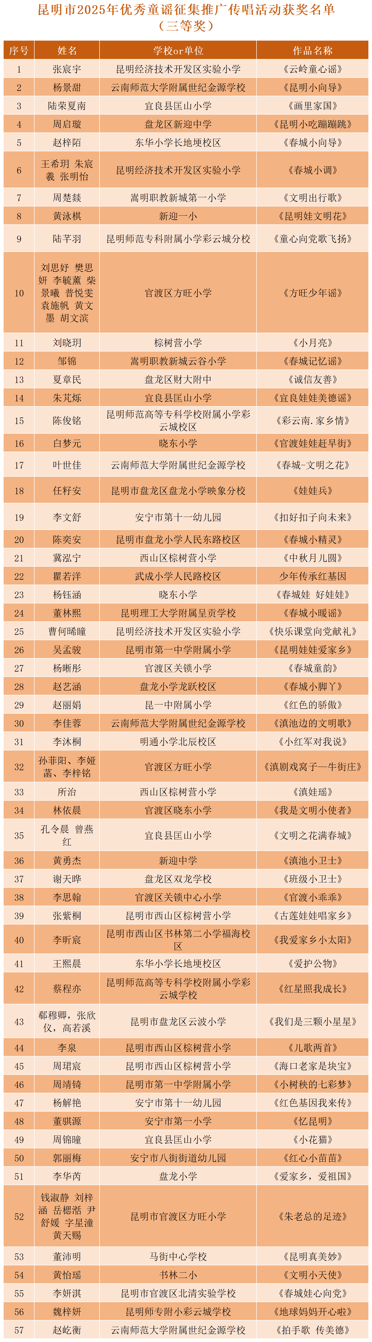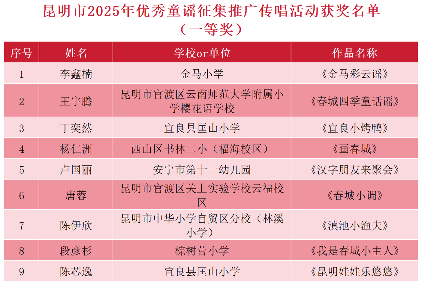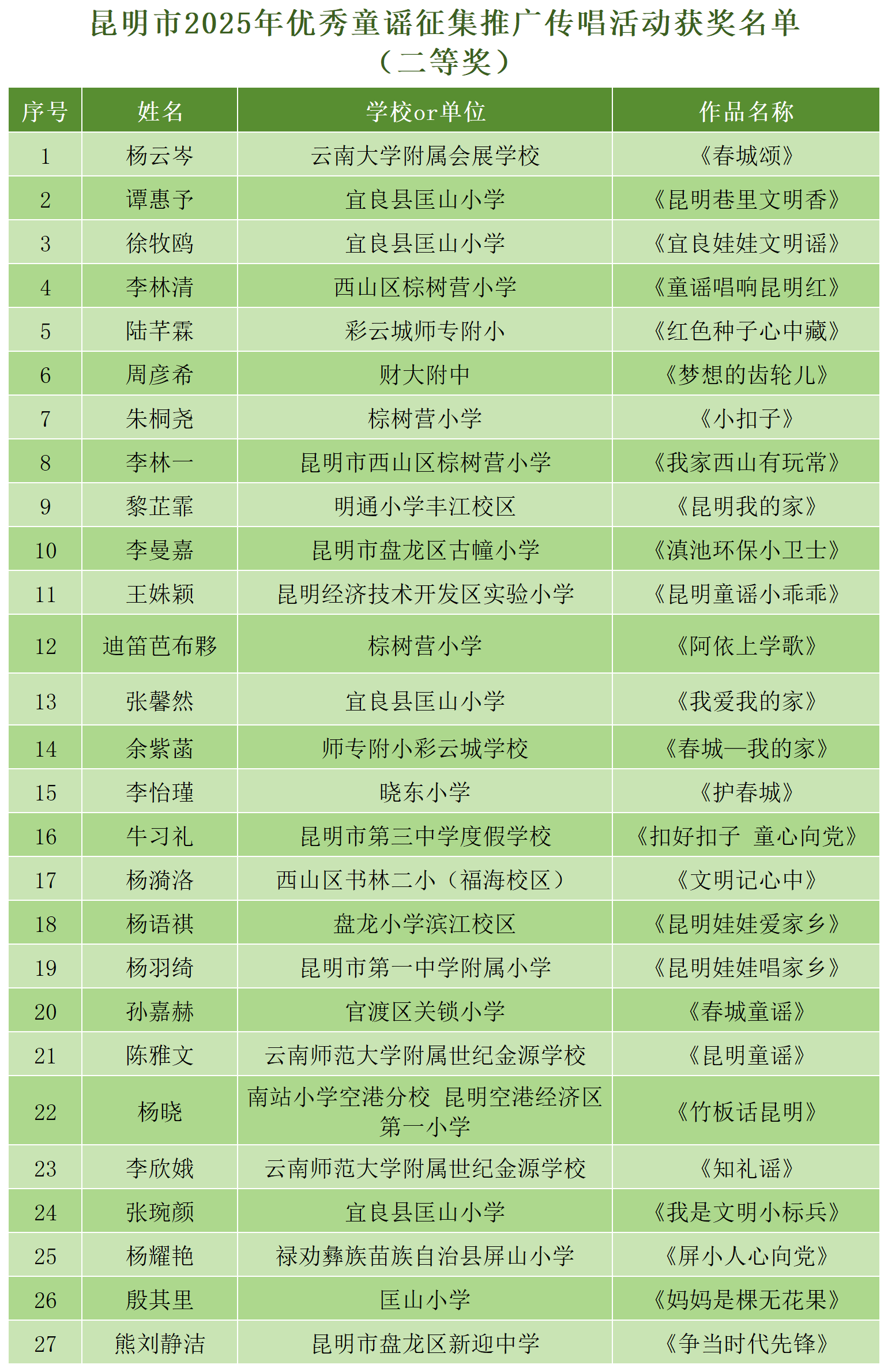昆明市2025年优秀童谣征集推广传唱活动获奖名单
