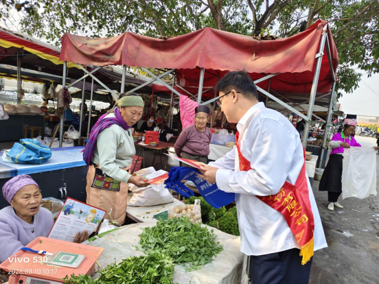 3月10日,德宏中支联合人保健康险德宏中支,走进芒市芒常村网红菜市场,将金融消保知识送到百姓“菜篮子”