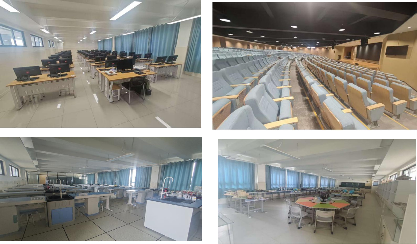 学校建成理化生实验室,地理、科学、计算机教室、棋类教室,音乐、美术教室,逐步完善了报告厅、会议室、阶梯教室、室内体育馆、图书室、阅览室等场馆设施设备,每间教室配备多媒体设备,后勤团队建立“及时响应、高效解决”的维修机制。每学期进行设备检查检修活动,确保教学设备完好率始终保持98%以上。供水系统实施专人监管、二次供水定期清洗及时送检,保障了用水安全。