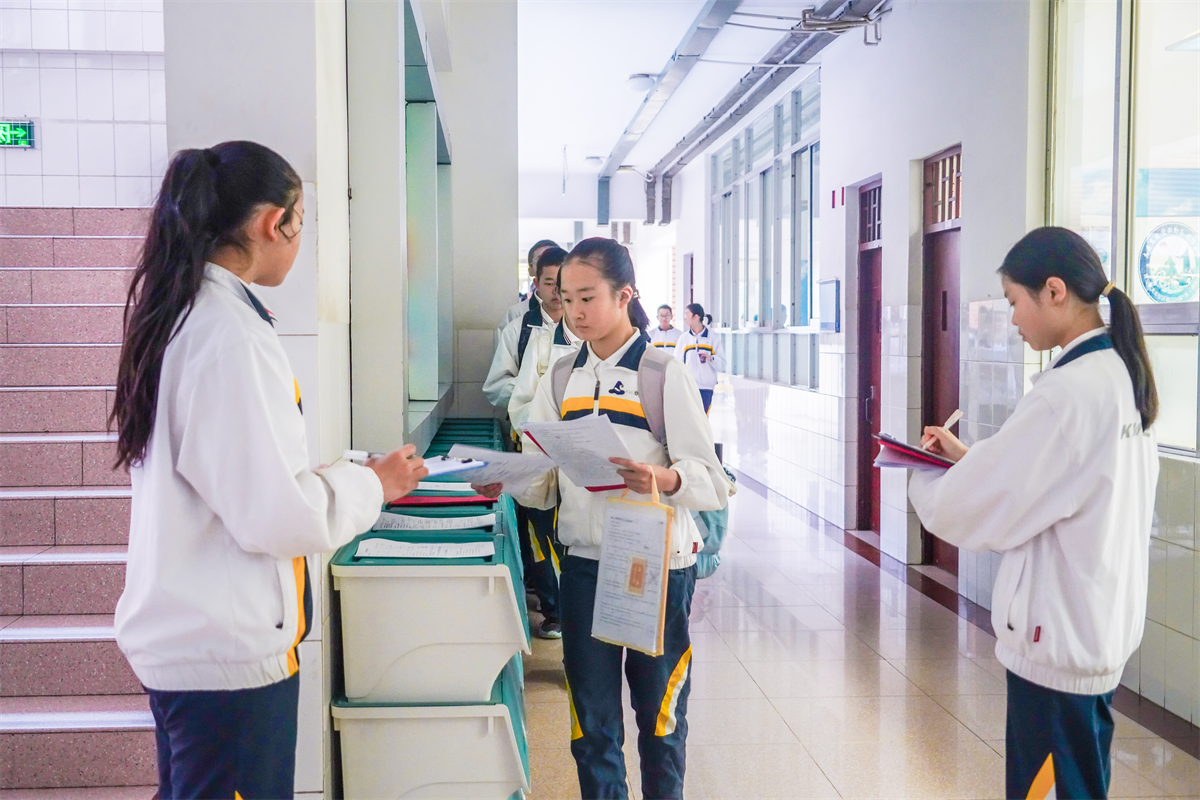 迎着晨曦,每天孩子们进入校园,总有温柔的守候与期盼。微风拂过树梢,阳光洒在肩头,一声声问候、一次次微笑,把平凡的清晨酿成最暖的时光。这里藏着守护,装着希望,每一个脚步都向着光亮,每一张笑脸都迎着朝阳。学生们整理衣领、拉好拉链,骑车者下车推行,清脆的“老师好”,是少年对规则的敬畏与对师长的敬意。楼梯口队列整齐,班级门口作业分类递交,科代表收放有序,这不仅是知识的交接,更是“条理分明、责任在心”习惯的日常践行。