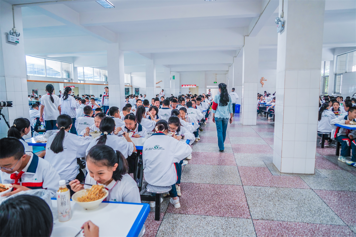 食堂灶火升腾,营养中餐、沸滚米线、美味馄饨、焦香鸡排等档口飘香。学生从工作人员手中接过温热餐食,掌心承接的不仅是五谷芬芳,更是学校对饮食安全与营养均衡的严格把控,以及对追梦少年的温暖关怀。
