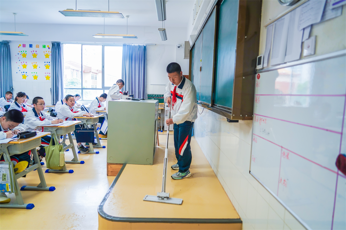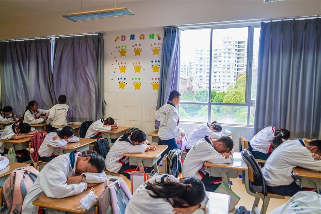 午餐后,值日生认真打扫班级卫生,确保教室洁净。学生或安静自习,或伏案小憩,午休提示音起,教室沉入静谧港湾,短暂休憩中积蓄下一程能量。